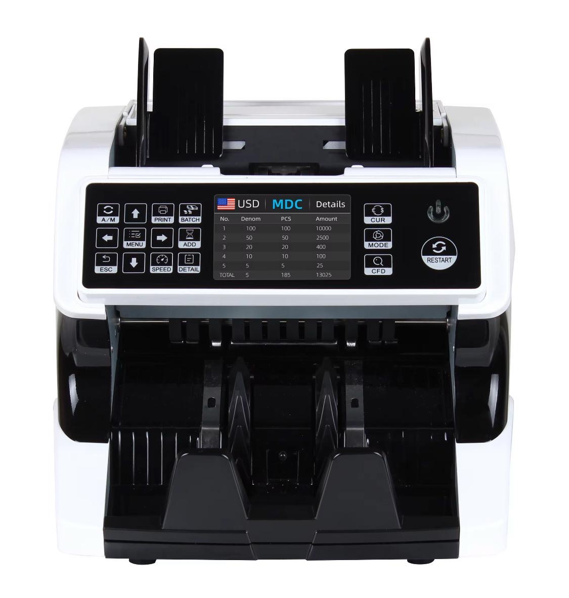 This machine comes equipped with 2CIS (Dual Contact Image Sensors) for precise bill scanning and recognition. It supports a full suite of counterfeit detection technologies including Magnetic (MG), Infrared (IR), Ultraviolet (UV), and Variable Ink Detection, ensuring every note is verified with high accuracy. The Serial Number Recognition (SN Recognition) feature adds another layer of control, ideal for audit and traceability purposes.